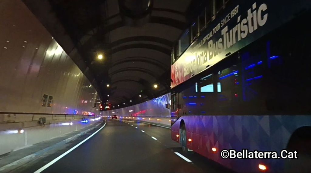 Bus turístic travessant el túnel de la Rovira