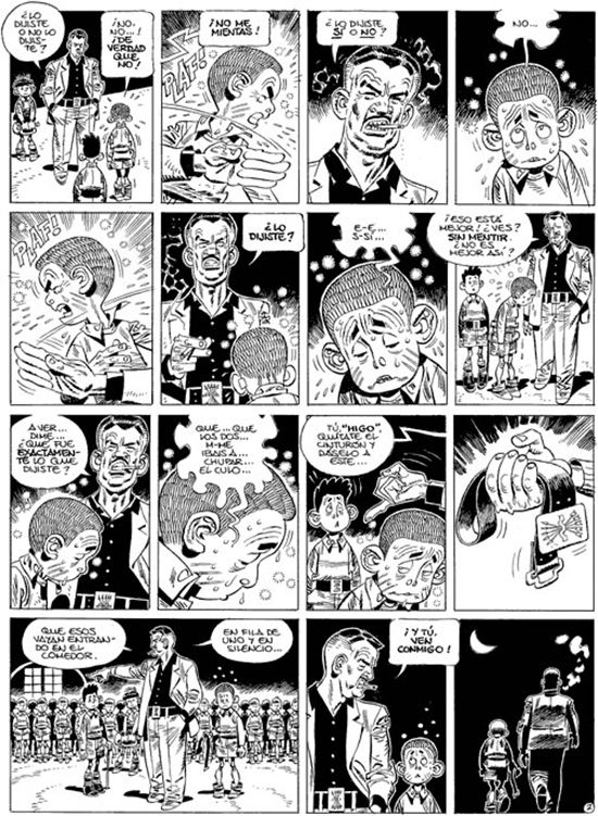 Una composició completa en blanc i negre, que «està directament relacionada amb les tècniques del gravat i el dibuix». Formes planes i austeres, d’una claredat sorprenent, i una construcció basada en «el principi clàssic del triangle». Una escena d’horror en un interior, on «no queda cap esperança d’escapament».