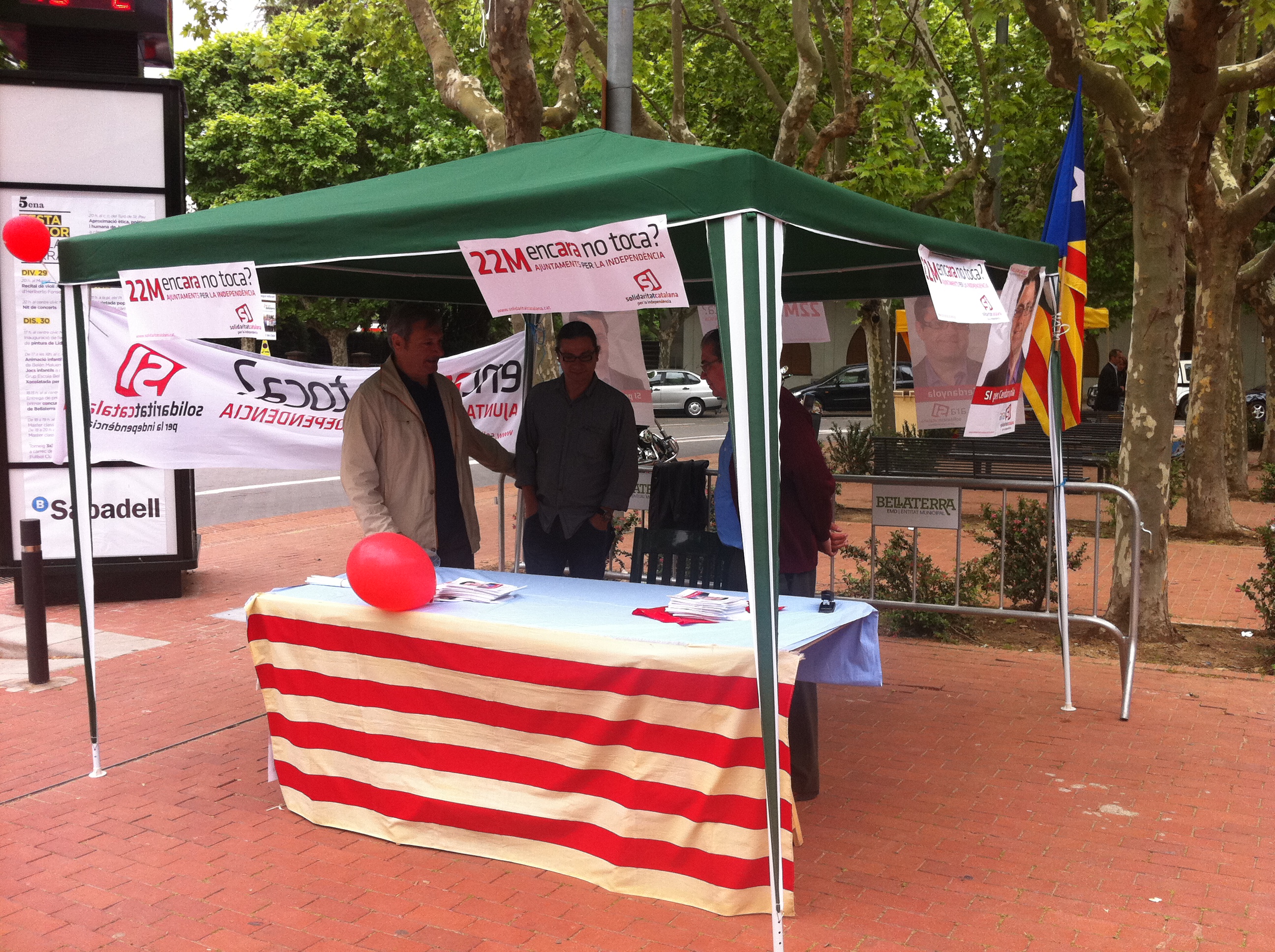 Avui, bellaterra.cat, ha fet una visita electoral a la Plaça del Pi de Bellaterra. Us presentem un petit document gràfic amb fotografies del cartells trobats i paradetes polítiques, d’Esquerra i SÍ (Partit per la Independència. Demà diumenge, a les 13:00 hores, al Centre Cívic de Bellaterra, Ignasi Roda, candidat a President de l’EMD de Bellaterra, presenta el seu programa i els 8 vocals. També demà les 7 del vespre, Ramon Andreu, presenta la seva candidatura i vocal, i el programa del seu partit polític Gent per Bellaterra