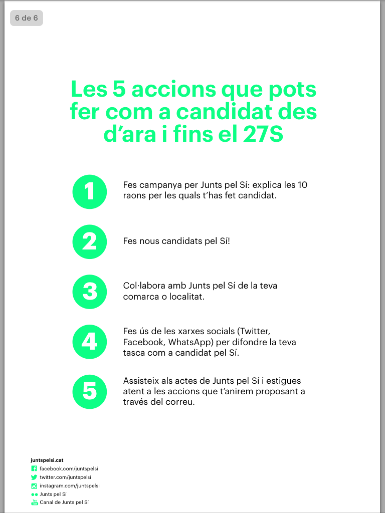 “La festa dels candidats” començarà a les 18 hores i hi haurà actuacions en directe, activitats per als més petits i els més grans així com “moltes sorpreses”. El correu enviat per Junts pel Sí assegura que “serà emocionant veure milers i milers de persones celebrant que hem fet la llista més gran de la història”. A més, els candidats podran recollir el seu lot de campanya.