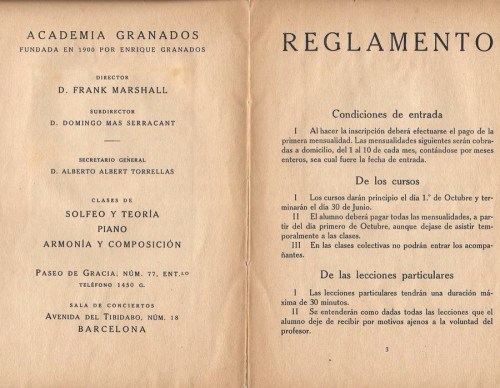 Potser hauríem de començar explicant què és la Sala Granados. Aquesta caseta de l’Avinguda del Tibidabo, d’aspecte tan discret (i més ara que porta gairebé deu anys desocupada) que pots passar per davant sense veure-la, va ser, fa una mica més de cent anys, l’estudi del compositor Enric Granados. El doctor Salvador Andreu, propietari de diverses cases en aquell carrer nou de trinca, n’hi havia cedit l’ús a canvi que fes classe de piano a les seves filles; sembla un acord purament simbòlic. En les dues plantes per sota del nivell del carrer, construïdes aprofitant el desnivell del terreny, el compositor tenia el seu estudi; a la planta baixa hi havia una petita sala de concerts, la Sala Granados. Una de les coses que vaig demanar a la Mònica i l’Alícia és si era un auditori com els entenem avui, obert a tothom que pagués una entrada, o bé era un saló com n’hi havia encara a primers del segle XX, obert només a amics i convidats. Era una sala com les d’avui, que depenia del que ara coneixem com a Acadèmia Marshall i llavors era l’Acadèmia Granados. En l’imaginari col·lectiu dels aficionats és l’auditori on Conxita Badia i el compositor van estrenar les Canciones Amatorias, el 5 d’abril de 1915, però durant molts anys s’hi van fer concerts regularment i no només de Granados: també dels alumnes dels darrers cursos o d’altres músics com Arthur Rubinstein o Manuel de Falla.