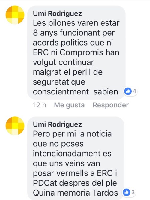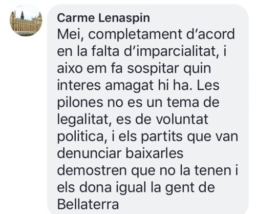 Volia donar les gràcies en particular al Sr. Quim Oltra d’ERC per fer costat a Compromís per Cerdanyola al haver denunciat les pilones i al Sr. Jordi Macarulla del PDCAT per abstenir-se a la votació.