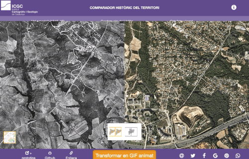 Una vegada seleccionades el tipus d’imatges que es vol comparar, l’aplicació permet crear un gif per mostrar l’evolució d’aquell punt del territori de manera animada. Amb aquesta seqüència es visualitzen aspectes històrics del nostre país, així com l’evolució i la urbanització del territori. Es tracta d’una eina que resulta molt útil en àmbits tècnics, com ara l’urbanisme, la història o la gestió del territori i també per a la ciutadania en general, donat el seu caràcter visual.