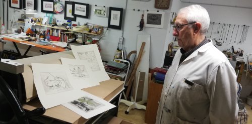 El bellaterrenc Santi Llorenç i Bosch, al seu taller artístic de gravat, al barri de Can Miró|BELLATERRA. CAT