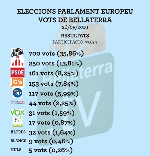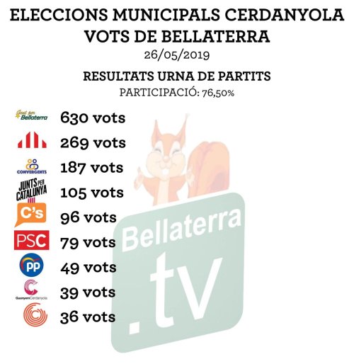 Resultats definitius de les eleccions municipals i europees 2019, aportats per Bellaterra TV.