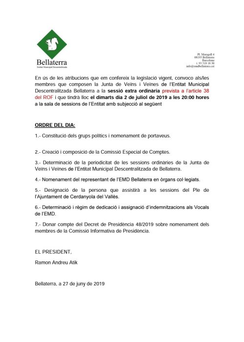 Ple de Veïnes i Veïns de l’EMD de Bellaterra, acompanyats de Carlos Cordón, batlle de Cerdanyola (falta el vocal Jordi Macarulla) |BELLATERRA.CAT