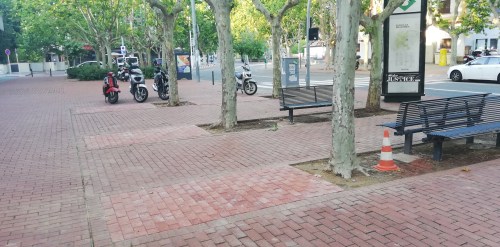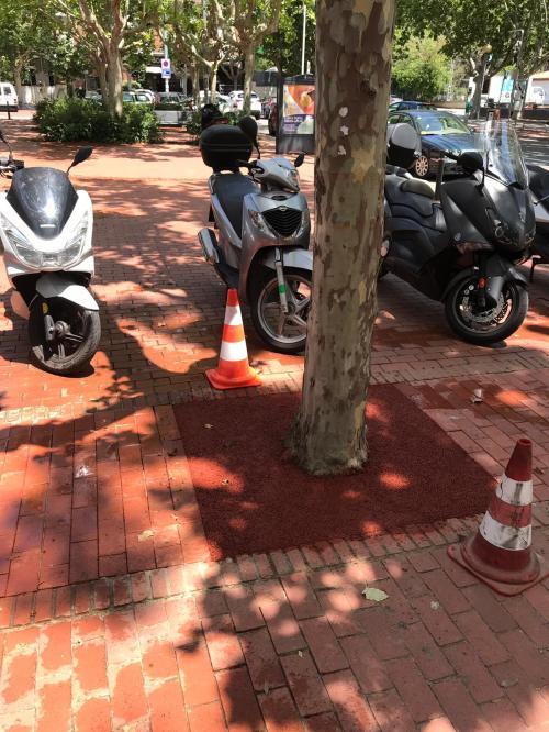 Aquestes feines ajuden a deixar un mínim de forats entre arbres i així anivellar la part de voreres del centre de la Plaça, la mes transitada pels joves que venen dels col·legis i veïns que fan les seves activitats de comerç.