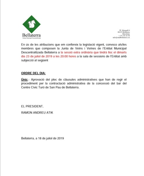La decisió es va votar a la Junta de Veïnes i Veïns de l’EMD de Bellaterra al ple del dia 15 de juliol de 2019