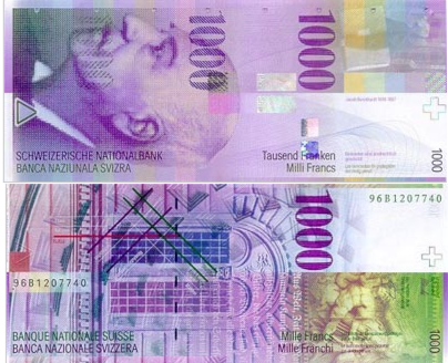Els bitllets de franc suís estàn impressos amb els 4 idiomes oficials de la Confederació Helvètica: Alemany, Francès, Italià i Romanche (aquest el van incorporar per respecte als 40.000 habitants del seu Cantó del Grissons)