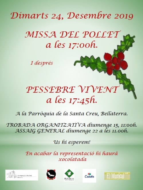 S’ha convocat la quarta edició 2019 del Pessebre Vivent de Bellaterra que se celebrará el 24 de desembre, després de la Missa del Pollet a l’interior de l’Església de la Santa Creu del nostre poble, una iniciativa veïnal que es va recuperar l’any 2016.