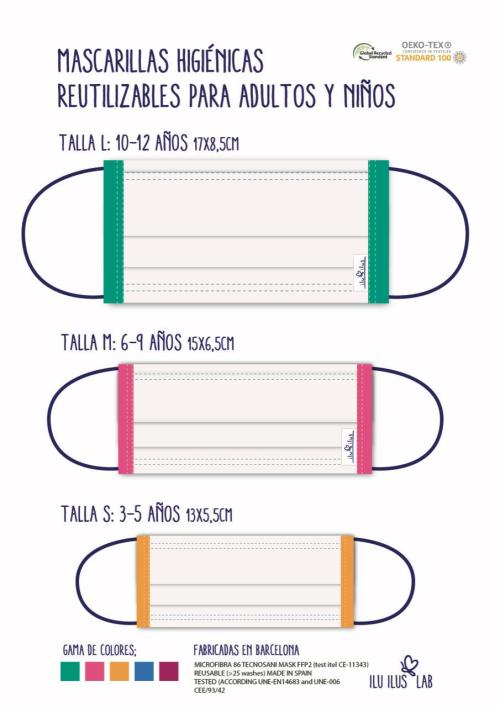 Tot i això, hi ha iniciatives com la d’Ilu Ilus Lab, de les bellaterrenques Marta Dansa i Laura Ramos que estàn dissenyant unes boniques mascaretes higièniques de tres mides diferents per a nens i adults.