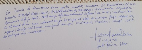 Dedicatòria de Jordi Garcia Soler a La Taula de Barcelona, Bib Gourmand a la Guia Michelin, des de 1994 fins 2015