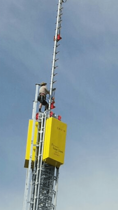 L’antena telescòpica té uns 50 metres d’alçada, i llum nocturna pels avions
