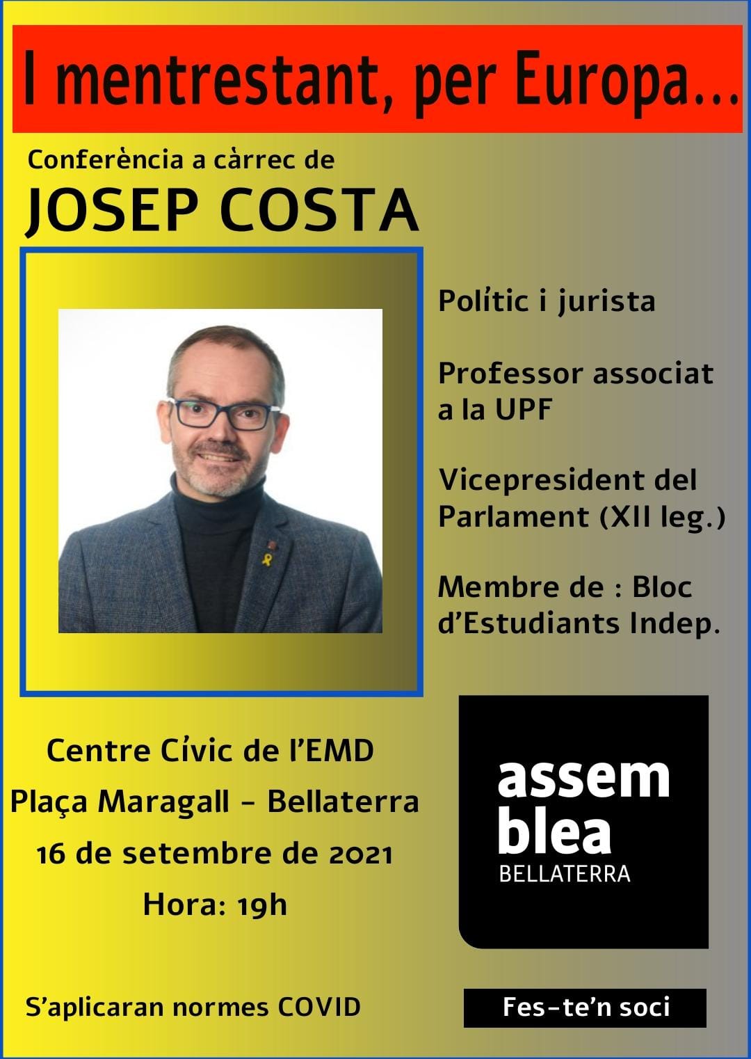 Posted in Bellaterra, tagged AGENDA BELLATERRA: Josep Costa, ara a les 19h. al Centre Cívic de Bellaterra on 16 Setembre 2021|