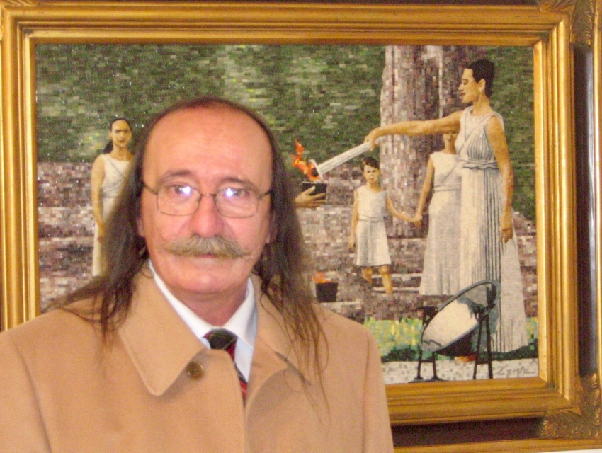 Mosaic “Allumage de la flamme olympique” Obra de Giorgos Garanatsios (Zorpe) FOTO: BELLATERRA.CATZorpe al seu taller de Tessalònica|FOTO: BELLATERRA.CAT