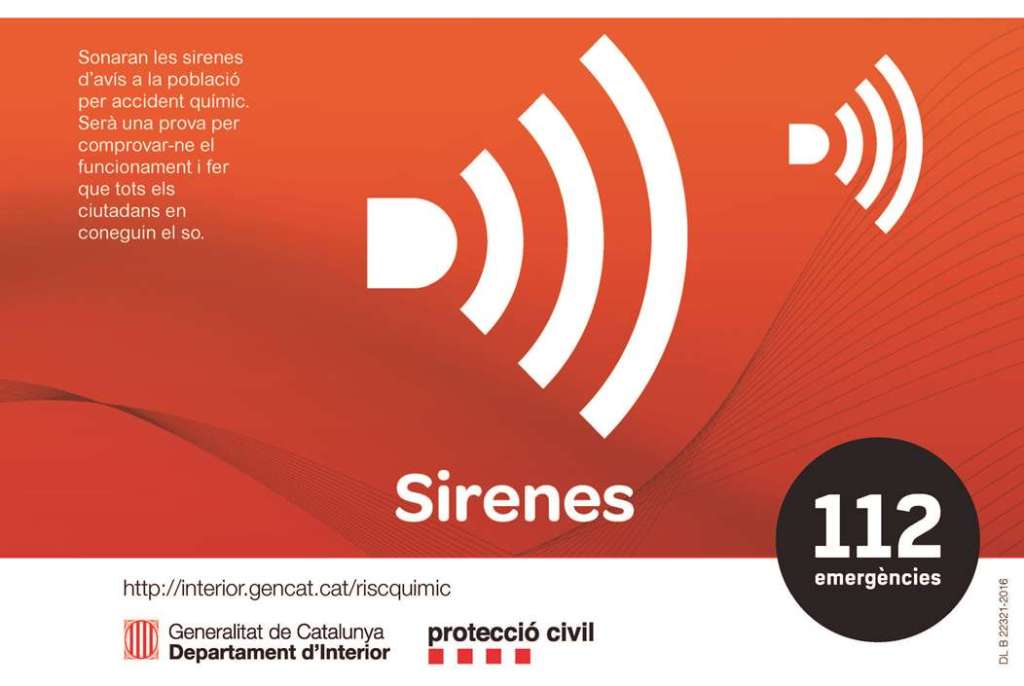 En el moment de l’avís s’emeten tres senyals d’un minut de durada separades per silencis de cinc segons. Això indica que hi ha hagut un accident químic. A partir d’aquí, s’han de prendre les mesures bàsiques de protecció.