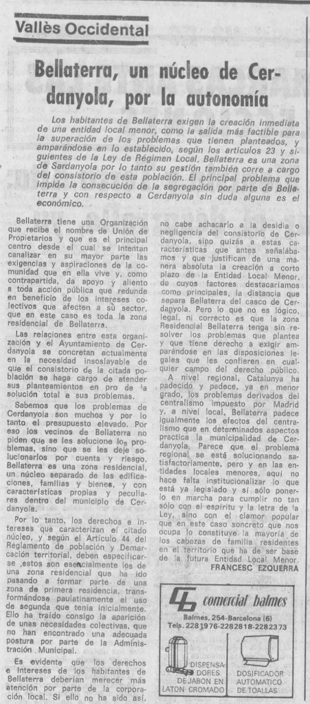 El portaveu del Grup Municipal de Junts per Cerdanyola, Joan Sánchez Braut, reconeix que van rebre amb sorpresa la notificació de que anava al Ple l’aprovació inicial de l’ordenança de terrasses, “perquè l’última notícia que teníem era que hi havia notables diferències entre Gremi d’Hostaleria i Ajuntament, però si l’ordenança arriba ara amb el vist i plau del Gremi, no ens oposarem a l’aprovació definitiva, ja que comerciants i hostalers són una de les principals fonts de riquesa de la ciutat i se’ls hi ha de posar fàcil”.
