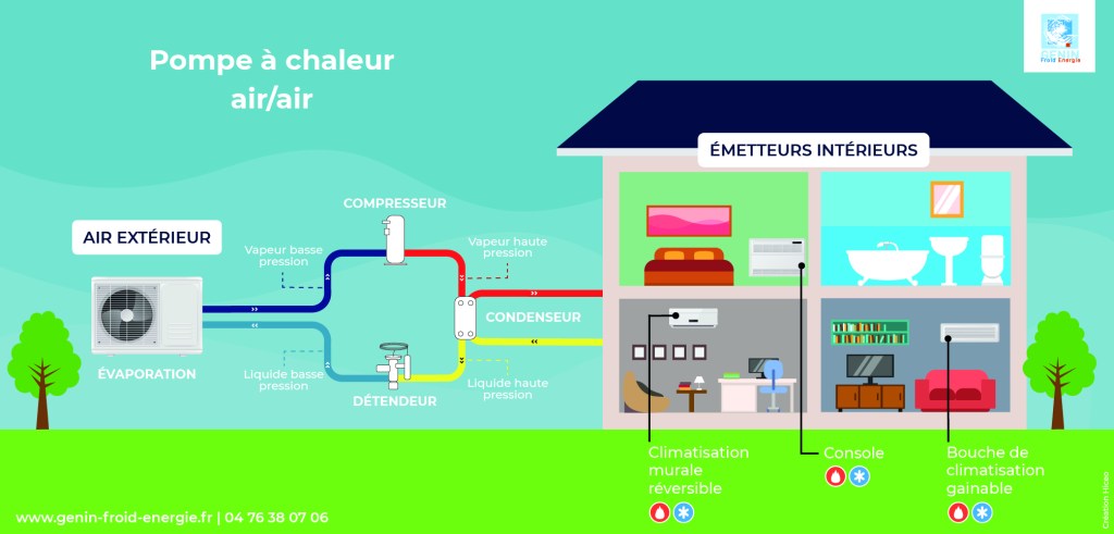 Tot i això, ara la majoria dels aparells d’aire condicionat que es venen disposen de bombes de calor reversibles. En invertir el cicle , es poden utilitzar tant per refredar una habitació com per escalfar-la, perquè el mateix equip pot expulsar cap a l’habitació calor o fred .