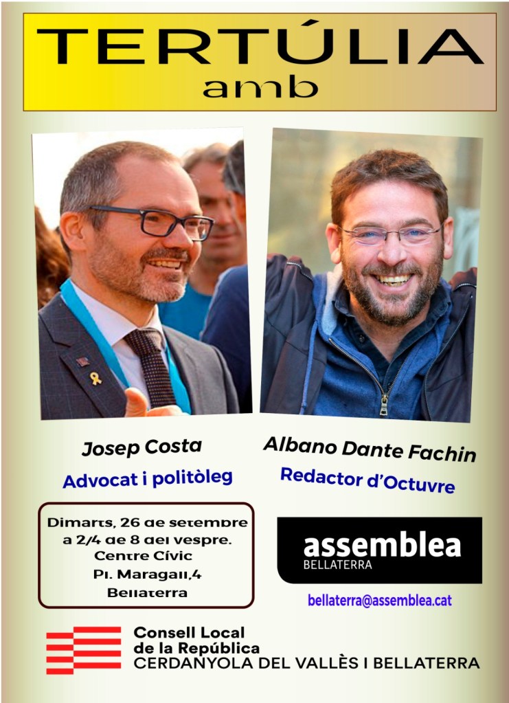 Avui dimarts, 26 de setembre, 19:30h. al Centre Cívic, Placa Maragall de Bellaterra