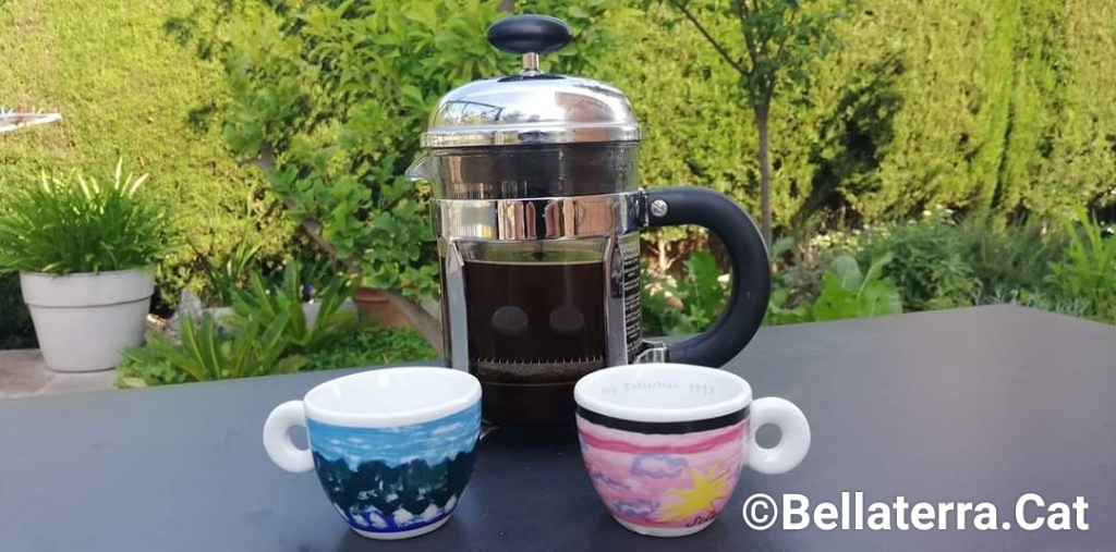 Cafè aràbiga en premsa francesa i tasses primera colecció illy de 1993 a Bellaterra