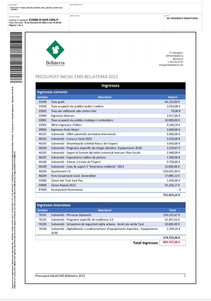 📍Us presentem el Pressupost inicial de 2023 que es va presentar i tractar al ple de la Junta Veïnal de l’EMD de Bellaterra, el passat dilluns, dia 16 d’octubre de 2023.