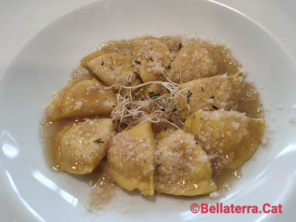 Raviolis de figues i formatge pecorino de Roma amb oli de nous i mel del Restaurant Vilalba