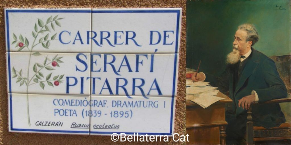 Frederic Soler i Hubert, conegut també pel pseudonim de Serafi Pitarra. Comediògraf, dramaturg i poeta romàntic. Barcelona, 9 d’octubre de 1839-Barcelona, 4 de juliol de 1895 De família humil, fou posat a l’empara del seu oncle matern, Carles Hubert, rellotger, i completà el seu ensenyament primari amb lectures molt diverses. A quinze anys actuà en agrupacions d’afeccionats que representaren les seves primeres peces; féu amistat amb Eduard Vidal i de Valenciano i Conrad Roure, amb els quals col·laborà sovint i reivindicà un teatre popular escrit “amb el català que ara es parla”, enfront de l’idioma més culte i arcaïtzant dels intel·lectuals fundadors dels jocs florals. Amb el pseudònim Serafí Pitarra estrenà la “peça bruta” Jaume el Conquistador, que més tard rebutjà; i, entre altres, La botifarra de la llibertat i Les píldores de Holloway o la pau d’Espanya (1860), en què satiritza la campanya menada a l’Àfrica pel general Prim i els voluntaris catalans.