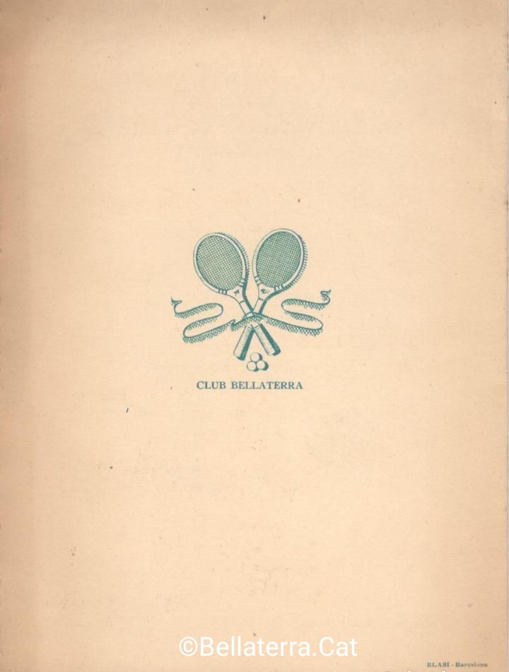 Cal destacar que, en aquella dècada dels anys cinquanta, l’entitat de Bellaterra deixa d’anomenar-se Sport Club Bella-Terra i passa dir-se Club Bellaterra, amb un nou distintiu: “dues raquetes creuades lligades amb una llaçada i tres pilotes al dessota”. Aquest anagrama, però, aviat deixa pas a un de nou l’any 1953; un triangle isòsceles invertit amb un pi dins seu i tres barres, tot ell en tons verds.