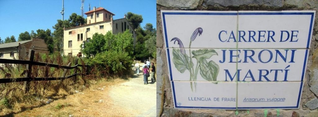 Placa del carrer de Jeroni Martí on apareix dibuixada la planta llengua de frare (Arisarum vulgare). Foto de la mal anomenada Can Jeroni Martí