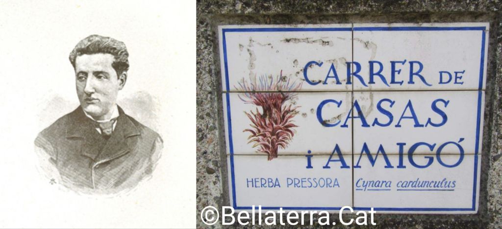 Placa del Carrer de Casas i Amigó de Bellaterra amb dibuix de l’herba pressora