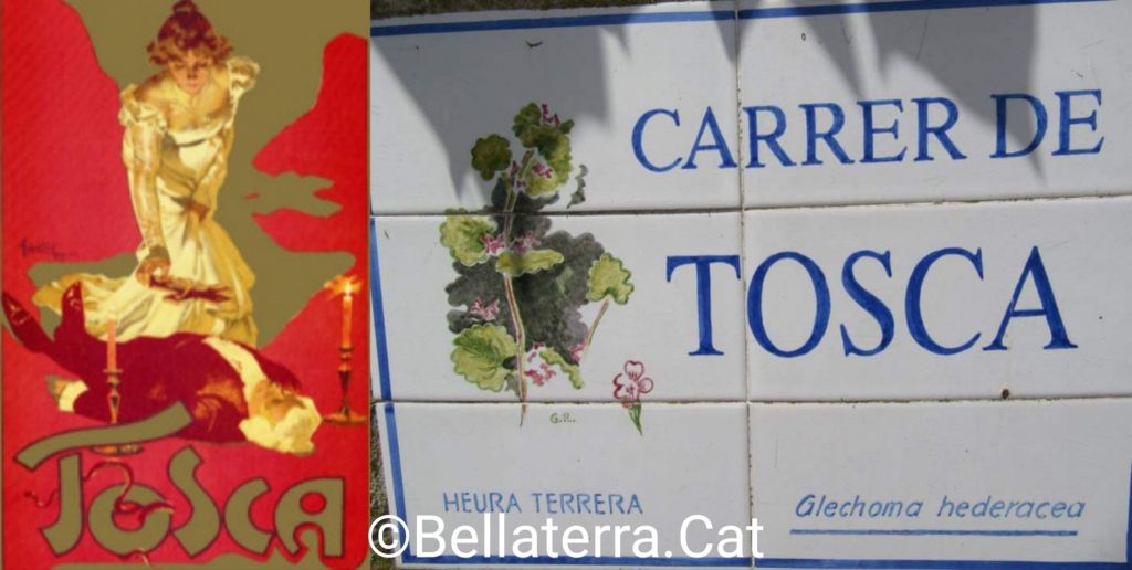 Al no concretat a qui està dedicat el nom del carrer, podria tractar-se a l’escorça seca del suro, però pensem serà a Tosca, l’òpera de G.Puccini, en tres actes, amb llibret de L.Illica i G.Giacosa, sobre el drama homònim de V.Sardou, estrenada a Roma el 1900 (a Barcelona, el 1902). Obra destacada del verisme i molt popular, presenta el drama de la cantant Floria Tosca, enamorada del pintor Mario Cavaradossi, el qual és empresonat al castell Sant’Angelo, a Roma, pel fet d’haver donat refugi a un proscrit. El cap de policia, Scarpia, promet a la dama de salvar la vida de Mario en canvi del seu amor. Ella simula acceptar, però l’apunyala. Mario és afusellat al castell en presència de Tosca, la qual es llança daltabaix de la torre.
