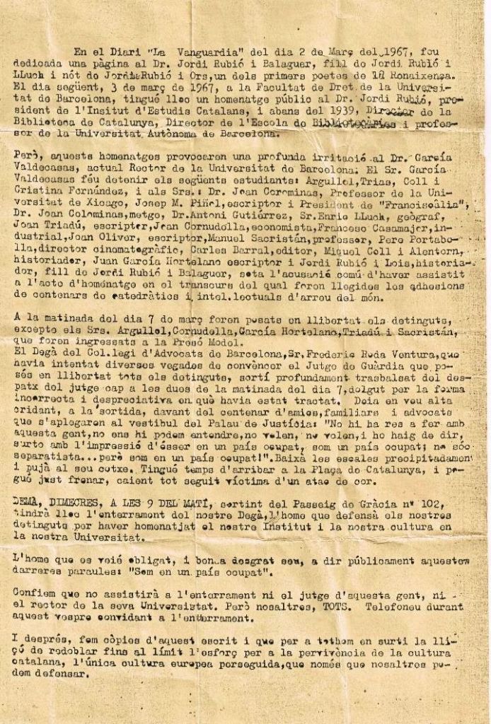 Morí sobtadament d’un infart (7 de març) dins del seu cotxe, després d’una forta discussió amb el jutjat de guàrdia, i sense haver aconseguit la llibertat dels estudiants que defensava.