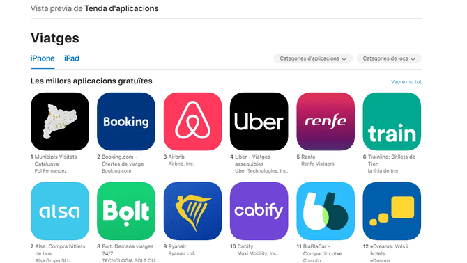 Una aplicació d’un desenvolupador català s’ha situat en tres dies en el top 1 d’aplicacions de viatges més descarregades a Espanya.