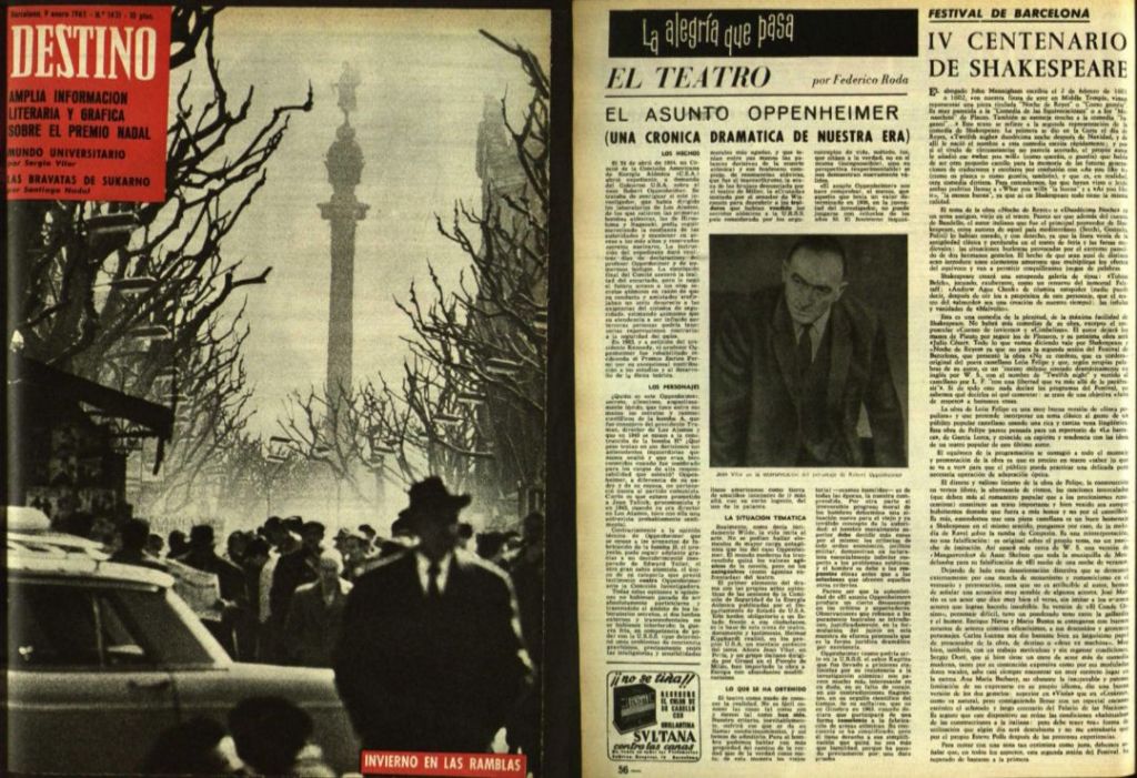 LLUIS TORRES|Des de Bellaterra.Cat, hem dedicat força temps a la recerca de totes les cròniques de teatre del bellaterrenc Frederic Roda Pérez, que va escriure per la revista Destino dels anys 1963 al 1968. Escanejades totes les portades i pàgines de teatre, les hem enviat a Ignasi Roda Fàbregas, perquè ens va dir que vol reunir-les en una publicació (o potser dos), ja que el gruix de l’obra podria superar els 600 articles. Cal tenir present que la revista Destino dedicava al teatre tota una plana on s’incloïa: articles de fons, crítica teatral, gasetilles i tot allò que tenia a veure amb el mon teatral.
