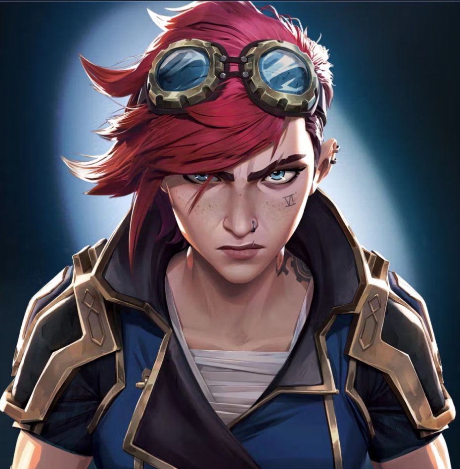 VI. Després d’acceptar que Powder ja no existeix, Vi assumeix què ha de fer: encarregar-se del monstre que ha creat, és a dir, Jinx. Sabent el perillós que pot arribar a ser la seva germana, Vi s’alia amb Caitlyn i accedeix a portar la insígnia d’agent.