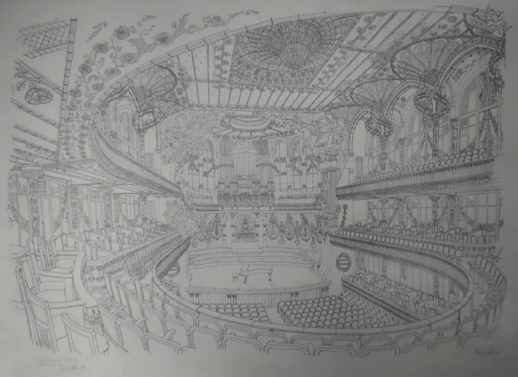 Ahir, al Palau de la Música Catalana. Bach i la <<Sonata a Kreutzer» al programa. El local és horrible, indescriptiblement desgraciat. Davant del frenètic panorama de guix i de majòlica m’és impossible concentrar-me. A més patia: les meves sabates, arreglades de nou, cruixien i feien soroll. A mig concert em dono per vençut i me’n vaig. Com és possible que el local d’una de les poques coses que podem presentar sigui tan sinistre? La cosa que podem presentar a tot arreu és l’Orfeó -és clar. ¿Serà veritat que les coses d’aquest país que no es mouen en un punt de mal gust tenen indefectiblement una vida migrada?