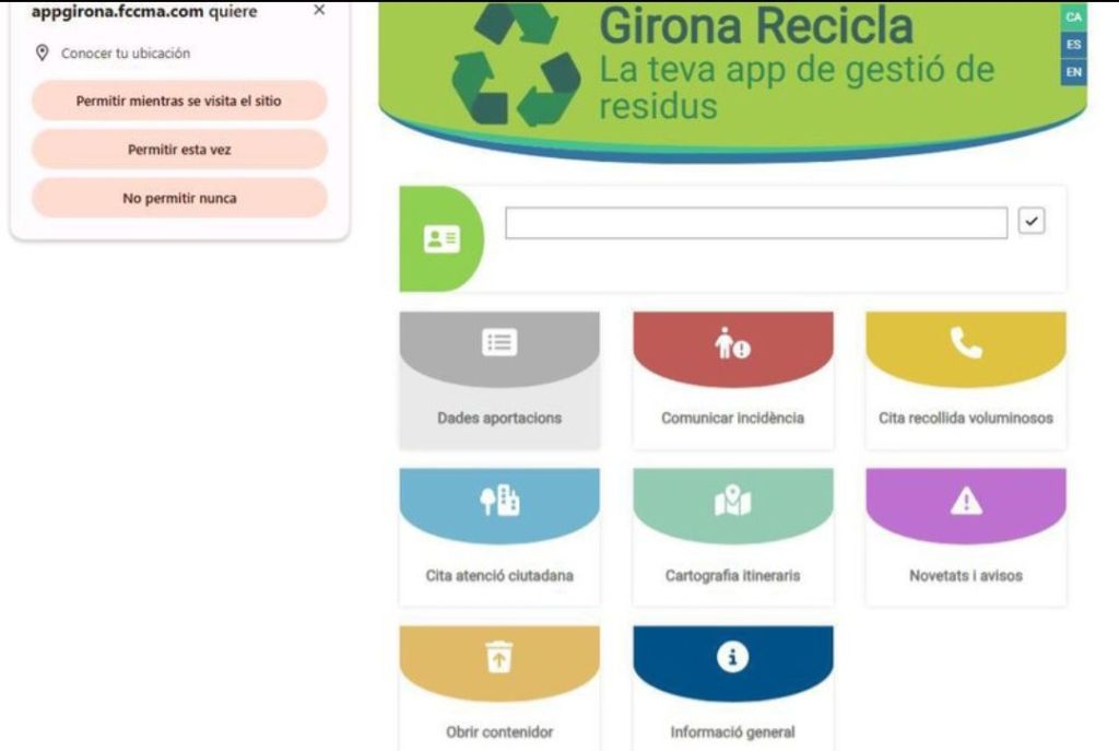 A més, hi haurà un apartat que redirigirà a una altra aplicació –que caldrà descarregar-se- que permetrà obrir els contenidors intel·ligents acostant els telèfons mòbils a les tapes dels contenidors igual com es fa amb les targetes. El desenvolupament d’aquesta aplicació estava previst en el contracte que té l’Ajuntament amb l’empresa i es posa ara en funcionament per validar el seu correcte funcionament i si s’ajusta a l’exigit per l’Ajuntament.