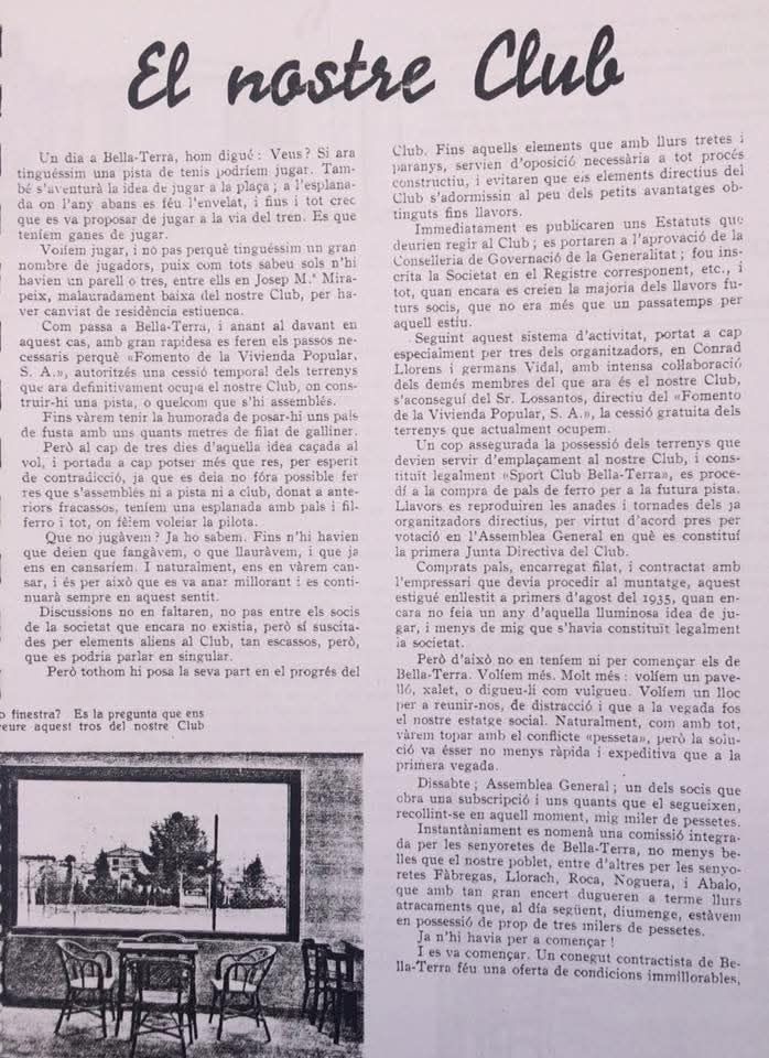 Font: Pàgina del número 1 de la revista Sport Club Bellaterra, 1 juliol 1936, L’Esquirol del Vallès, Artur Vidal i Solà