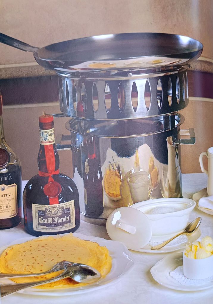 LLUIS TORRES✍️Diu una extensa llegenda que n un banquet ofert per Eduard, el príncep de Gal·les, l’any 1896, va intentar fer una Crêpe de la seva pròpia creació, però quan va afegir alcohol, el plat va incendiar-se, l’accidental actuació culinària, en lloc d’aterrir els convidats, es va convertir en una font de gran diversió, que va aprofitar per anomenar el plat de Crêpes Suzette, en honor a la seva parella.