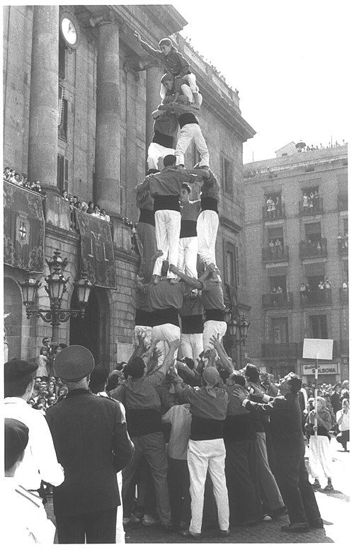 3 de 8 carregat de la Colla Vella dels Xiquets de Valls al II Gran Trofeu Jorba-Preciados el 1966, castell que feia nou anys que no s’intentava4 de 6 dels Castellers de Barcelona a la Plaça Sant Jaume al 1969