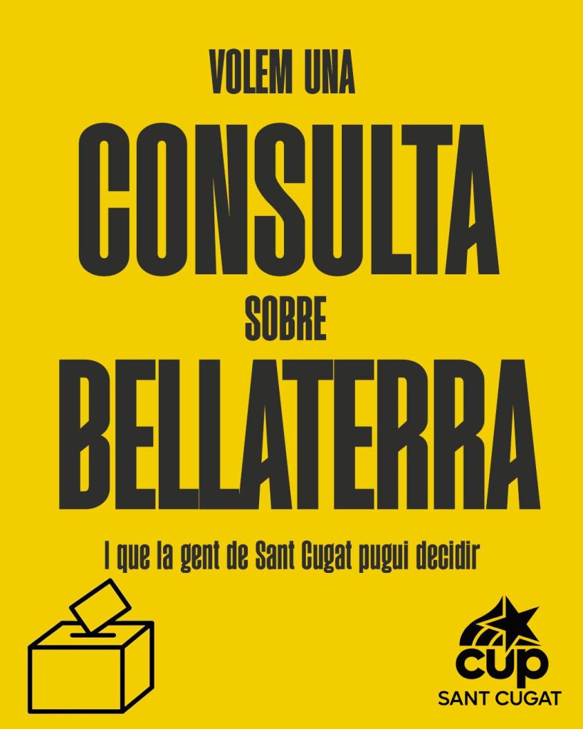 “La CUP demanarem al ple municipal d’aquest divendres que el govern impulsi una consulta popular perquè els veïns i veïnes de Sant Cugat puguin decidir sobre l’annexió de Bellaterra“.