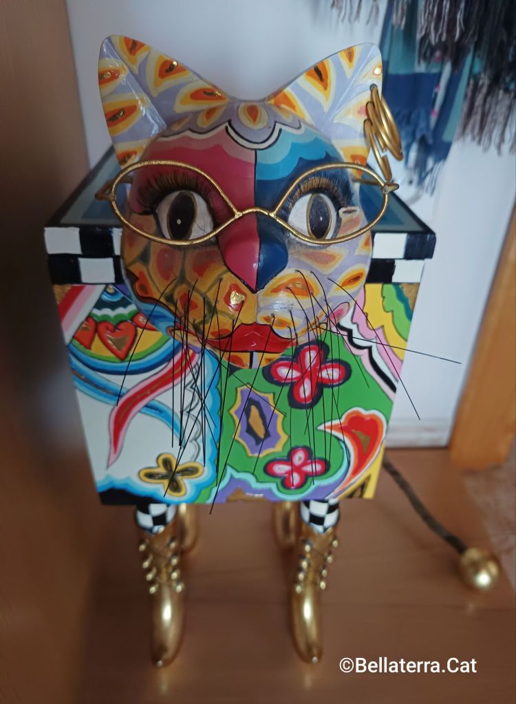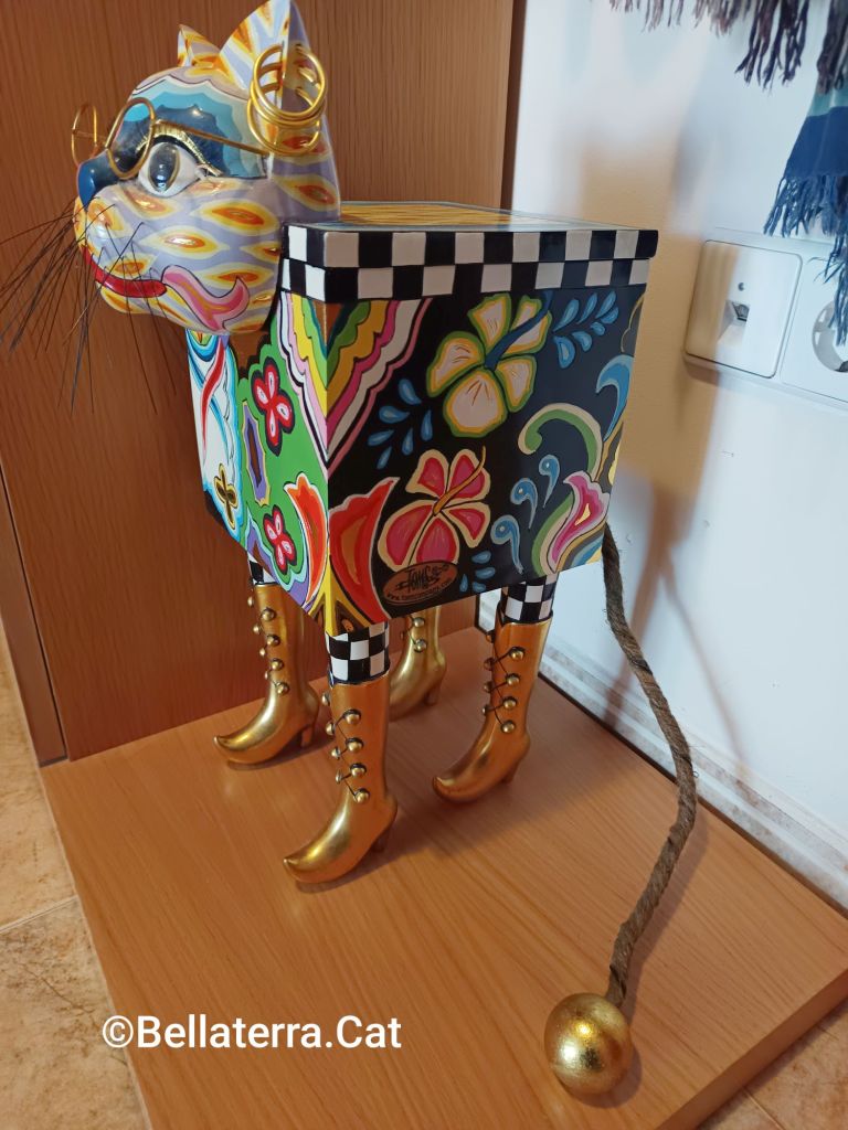 La caixa XXL CAT forma part de la col·lecció d’animals Drags de Thomas Hoffmann, feta a mà, amb aplicació de pa d’or i laca xinesa.