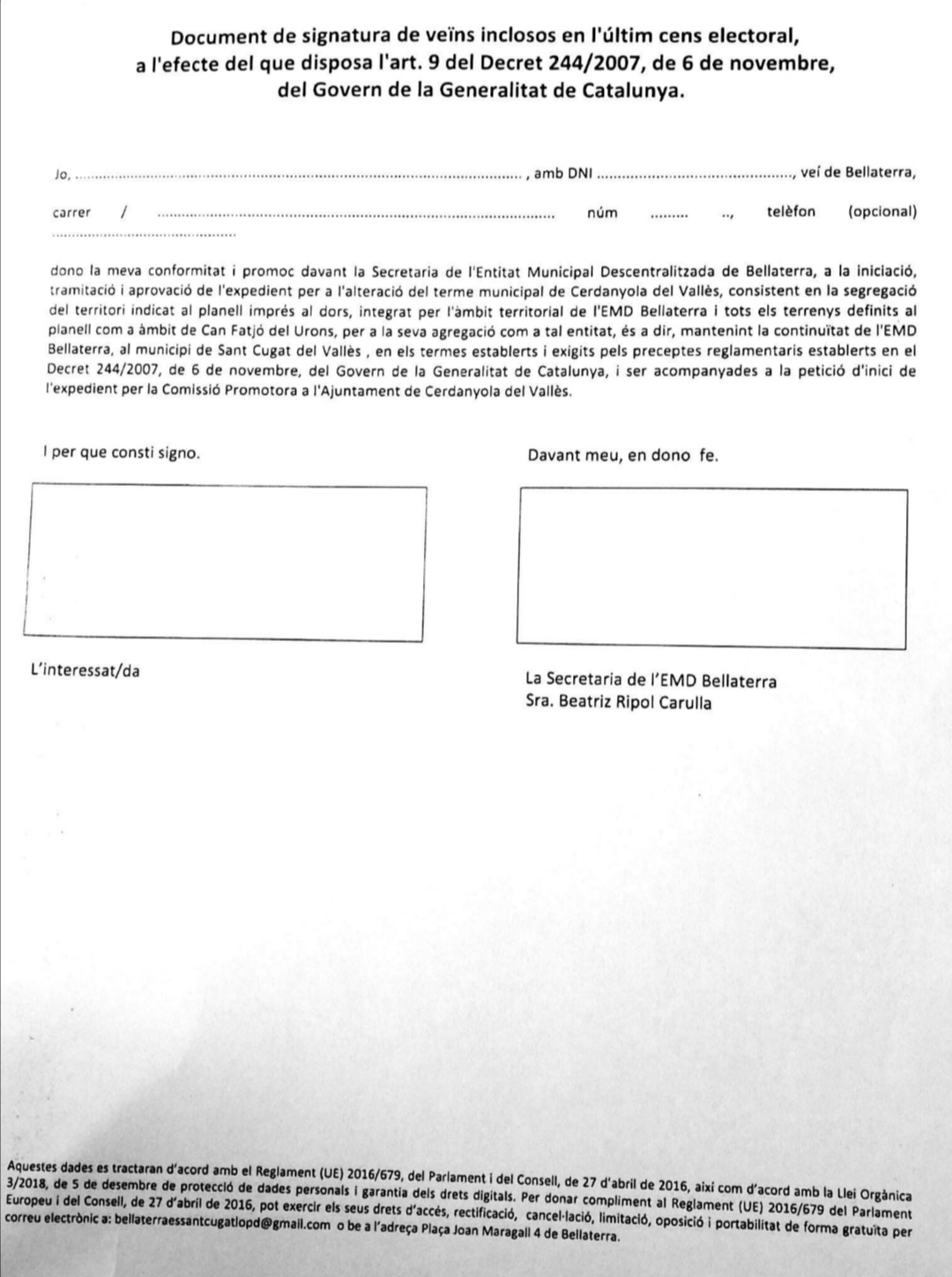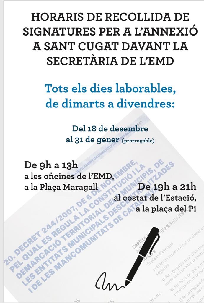 Per fer realitat el Procés d’Annexió a Sant Cugat del Vallès, s’han de recollir més dels 50% de signatures.