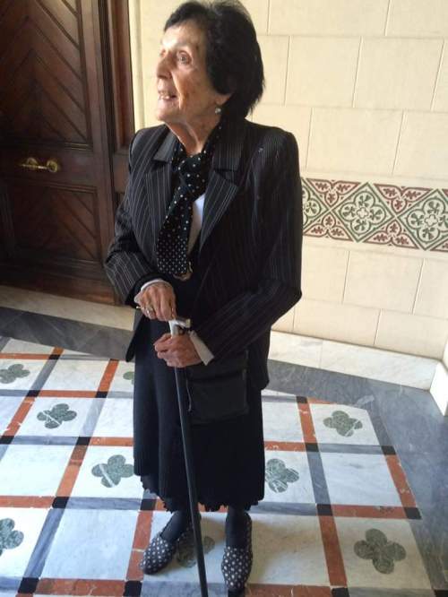 Amèlia Riera a l’entrada de casa seva de Plaça Catalunya de Barcelona (2016)|BELLATERRA. CAT