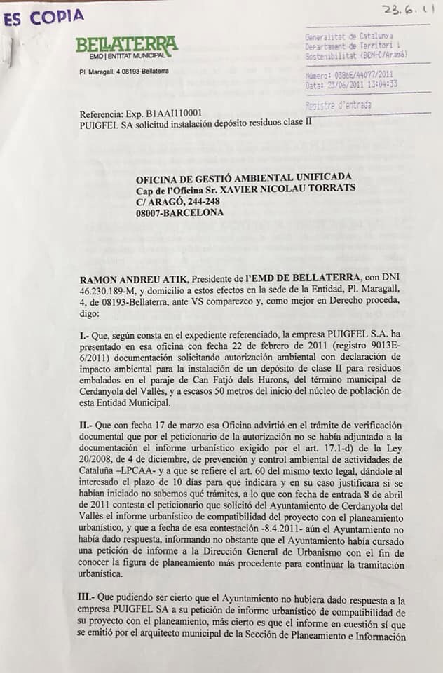Aquesta és la jugada autèntica del tema de l’Abocador de Can Fatjó dels Aurons, i la demostració que l’Ajuntament de Cerdanyola del Valles, sí ho volia fer al 100%.
