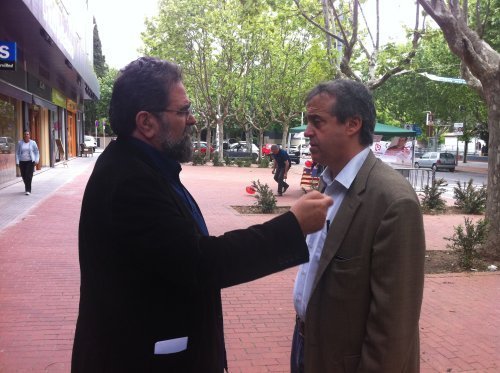 El bellaterrenc Ignasi Roda, candidat del partit dels ex comunistes ICV, amb el seu company de partit, l’ex alcalde Antoni Morral, professional de la política, ara a Junts x Cat/ BELLATERRA.CAT