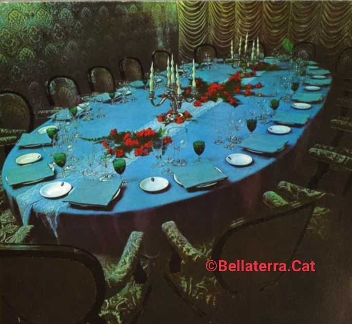 Saló blau del restaurant Via Veneto de Barcelona on cada mes es feia una tertúlia de 25 persones dedicada a un personatge d’actualitat