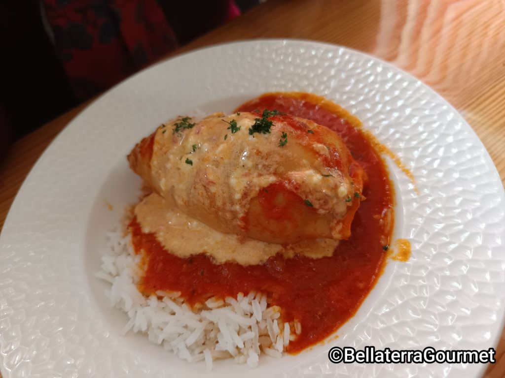 Quan estigueu a punt per servir el guisat, assegureu-vos que la carn i la guarnició estiguin calents. Col·loqueu la carn en una safata de servir. Afegiu la guarnició aromàtica sobre la carn i serviu immediatament.