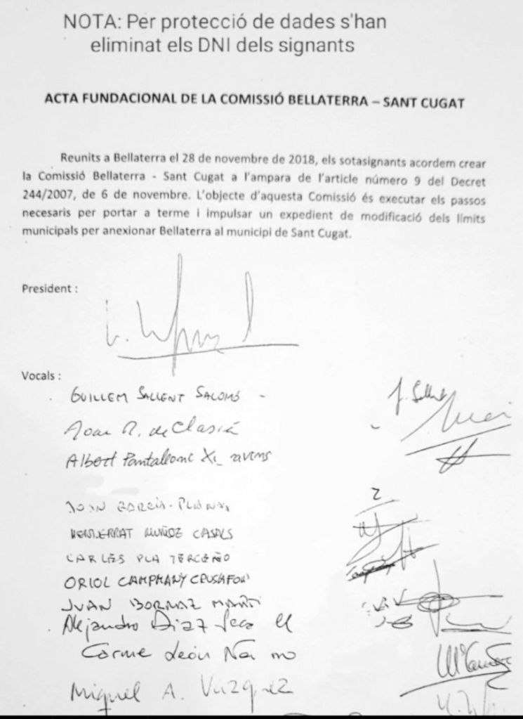 El 61% de bellaterrencs i bellaterrenques han signat l’annexió a Sant Cugat, un percentatge difícil d’obtenir a Bellaterra, com tots sabeu, i és va aconseguir. La voluntat del nostre poble de Bellaterra és clara, volem anar a Sant Cugat.