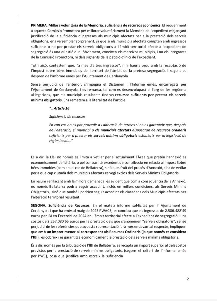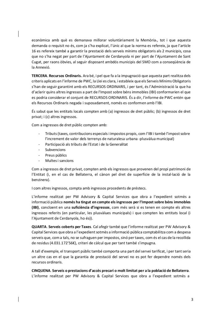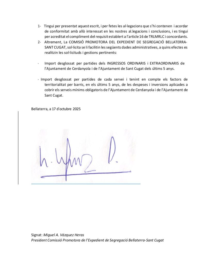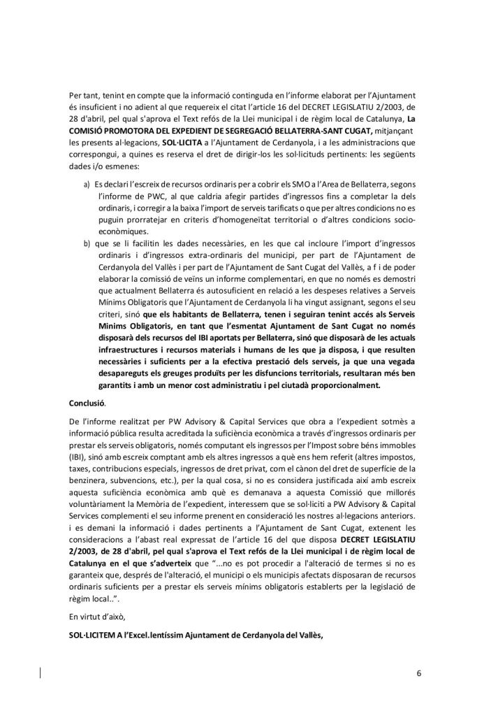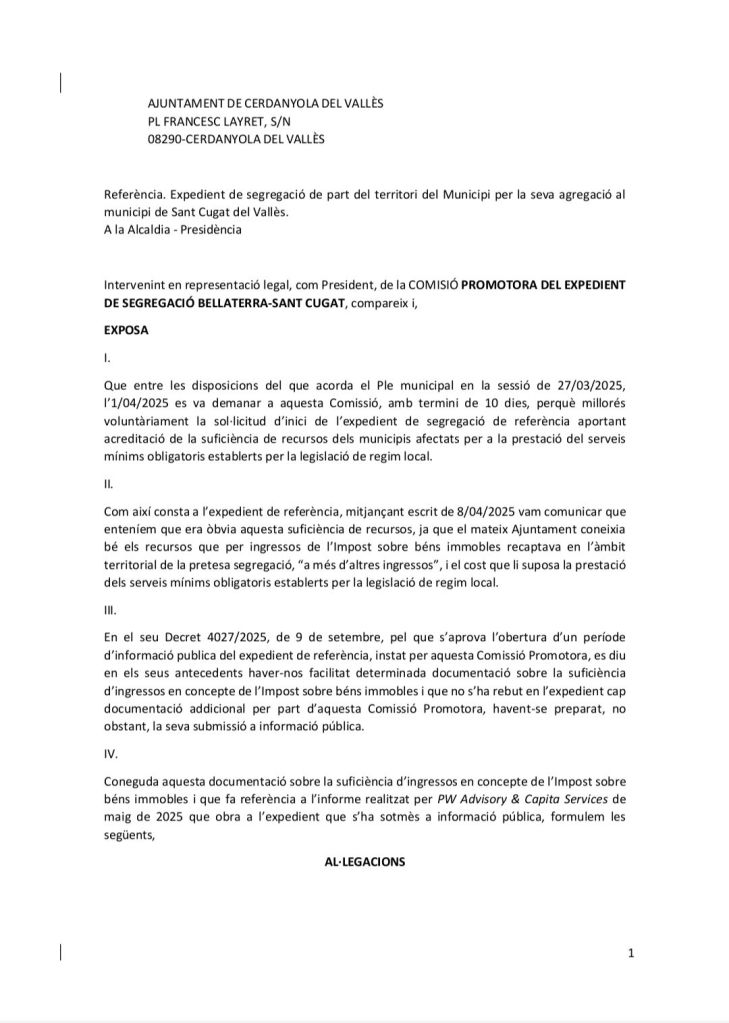 Després que el Tribunal Superior de Justícia de Catalunya donés la raó per dues vegades a la Comissió Bellaterra és Sant Cugat contra l’Ajuntament de Cerdanyola, finalment l’ajuntament ha instruït l’expedient, l’ha tingut en exposició pública i s’han pogut fer al·legacions com ha fet la Comissió Promotora Bellaterra és Sant Cugat.